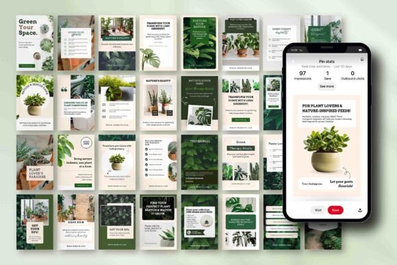 If your plant shop or gardening blog is posting content but not getting the saves and clicks it deserves, the layouts might be the issue — not your photos. 30+ pin designs built around plant content give you the structure to show off your indoor garden, share care tips, promote your shop, or post those “why is my pothos dying” guides that every plant parent saves immediately.
