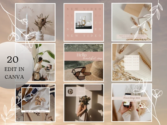 20 versatile Canva templates for businesses and bloggers that need polished, on-brand Instagram content without starting from zero each time. The aesthetic style keeps things visually clean while leaving enough room to shape each post around your own products, services, or messaging.