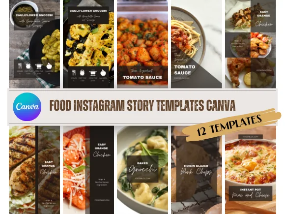 12 Instagram Story templates designed for food bloggers and small food businesses that want a clean, consistent presence without building layouts from scratch. Each template is sized for Stories and styled to work across different types of content — product highlights, recipes, promotions.